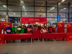 在昆山南站举办的“温馨春运,暖‘新’相伴”主题活动中,书法家现场挥毫送福、暖“新”市集提供免费寄递、热饮供应、反诈宣传等贴心服务,更有机器人写福、机械狗舞狮等科技表演,让旅客在候车时感受传统与科技交织的春运新体验。