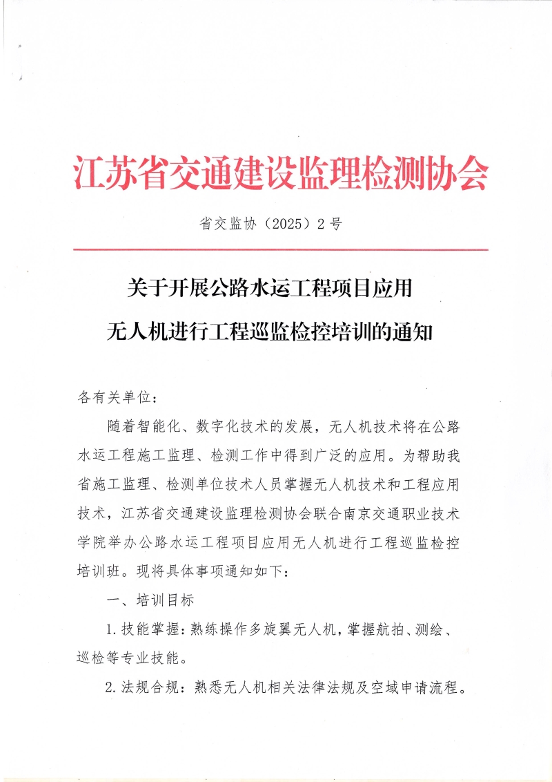 江苏省交通运输厅门户网站 协会动态 关于开展公路水运工程项目应用无人机进行工程巡监检控培训的通知-k8凯发天生赢家